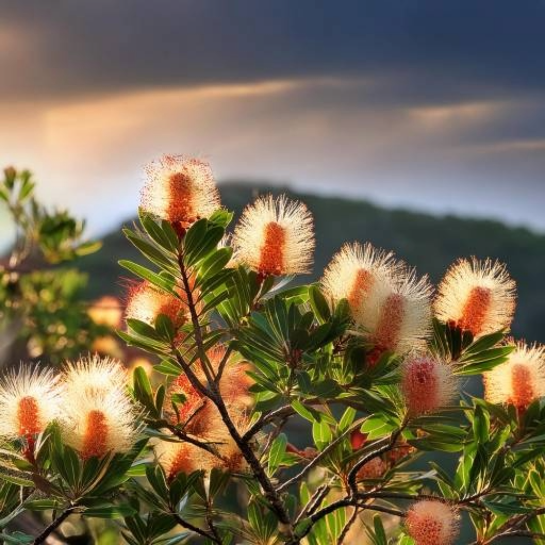 Description: Cajeput is a small tree with a tolerably erect but crooked trunk; a soft, thick, spongy, whitish, ash-colored bark; and scattered branches, with the slender twigs often drooping as completely as in the weeping willow (Salix Babylonica). The leaves are alternate, most frequently vertical, short-stalked, narrow- lanceolate, while young, sericeous, sometimes slightly falcate, entire, from 3 to 5 inches long, and from 1/2 to 3/4 of an inch broad; and very aromatic when bruised.