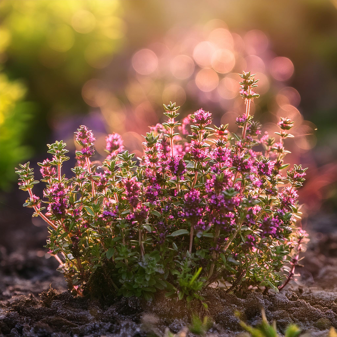 Description: The Thyme plant is an evergreen perennial shrub that grows up to 45 cm (18 inches) in height. It has a woody root system, a multi-branched stem, small elliptical greenish gray aromatic leaves and pale purple or white flowers. Thyme is derived from the Greek word 'thymos' that means 'perfume'. White Thyme can also be derived from this species if the Red Thyme is further distilled; nonetheless, White Thyme is more commonly derived from the Thymus Zygis species.
